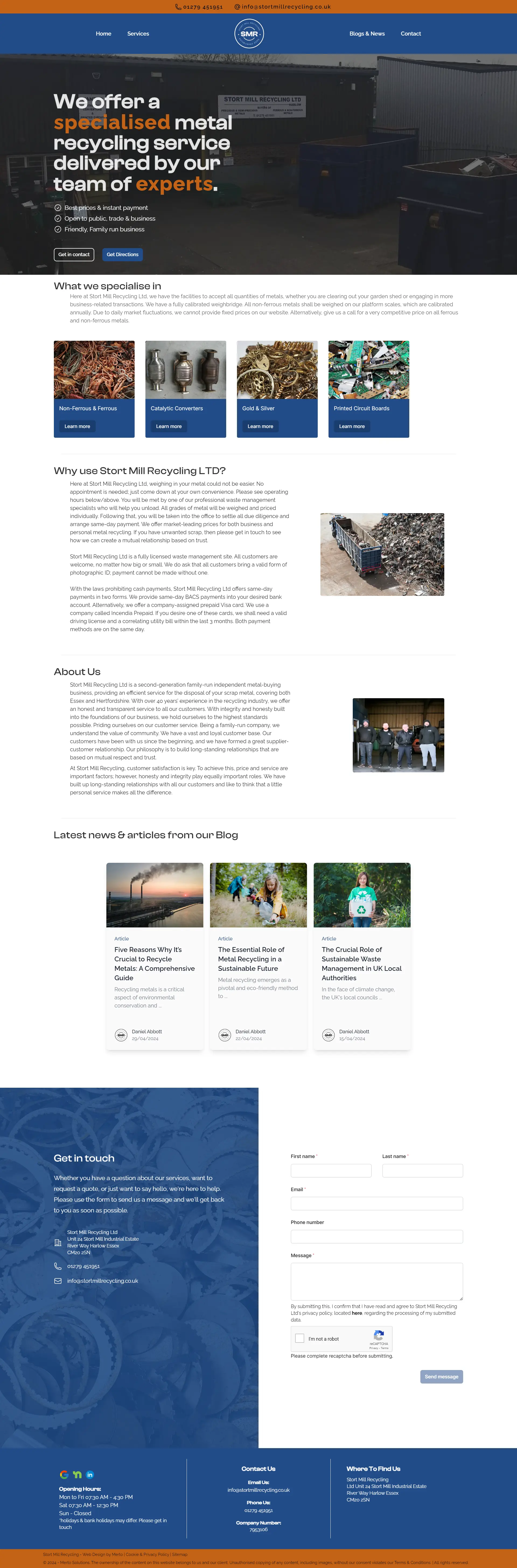 At Merto Software Solutions, we partnered with Stort Mill Recycling to create a custom website that reflects their professionalism and commitment to excellence. Our goal was to deliver a modern, user-friendly platform that highlights their services and makes it easy for customers to connect with them.